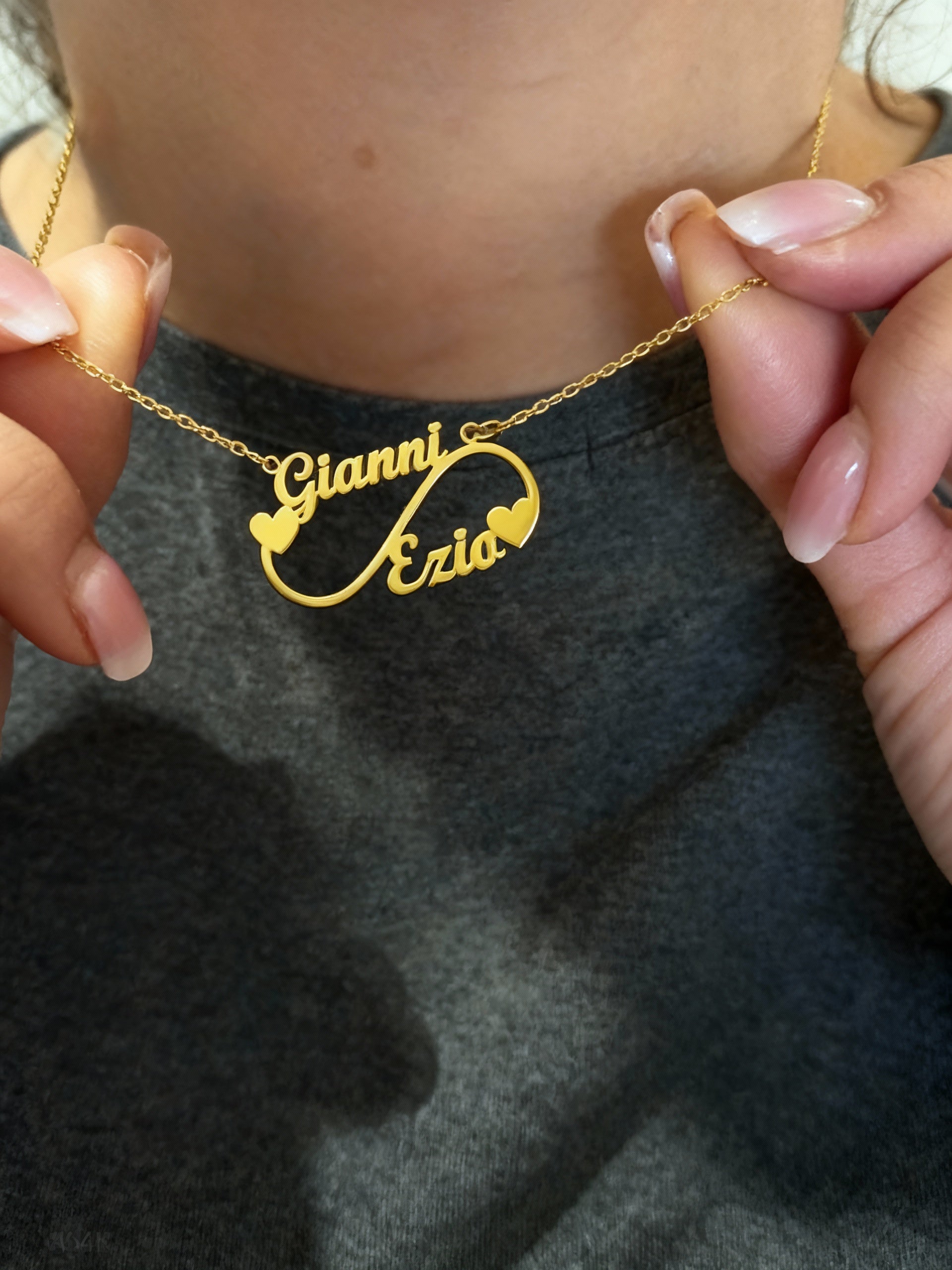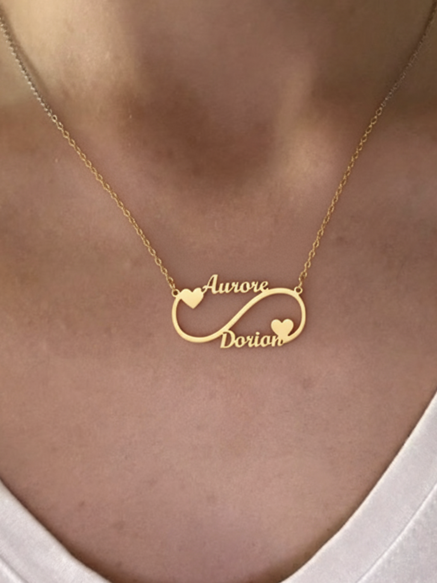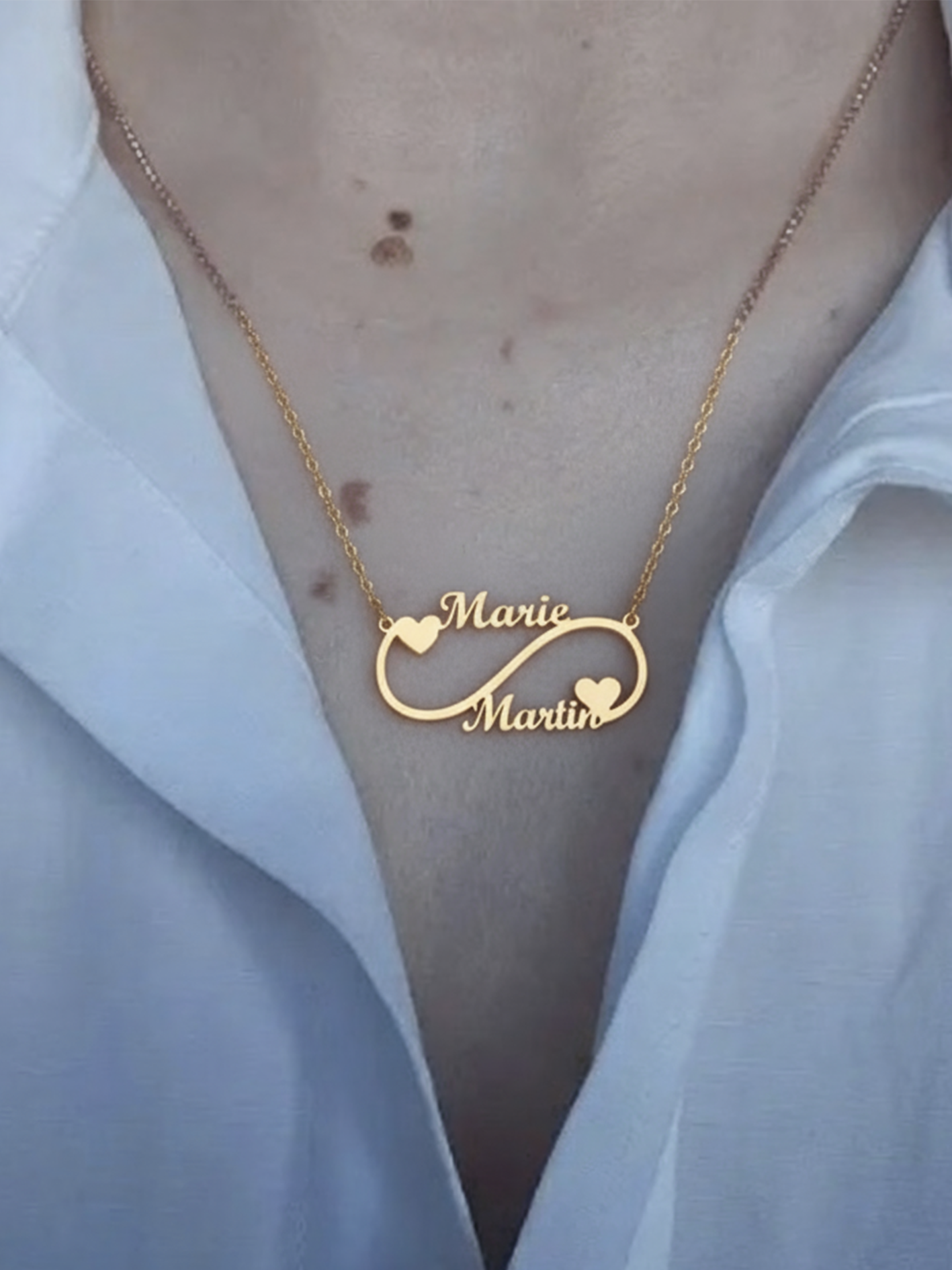 Ein personalisiertes Infinity-Halskettchen zu schenken, ist viel mehr als ein Geschenk: Es ist ein Symbol ewiger Liebe. Stellen Sie sich ihr Gesicht vor, das aufleuchtet, wenn sie entdecken, dass zwei Namen für immer im Unendlichkeitssymbol miteinander verflochten sind, geschmückt mit zarten Herzen. T
