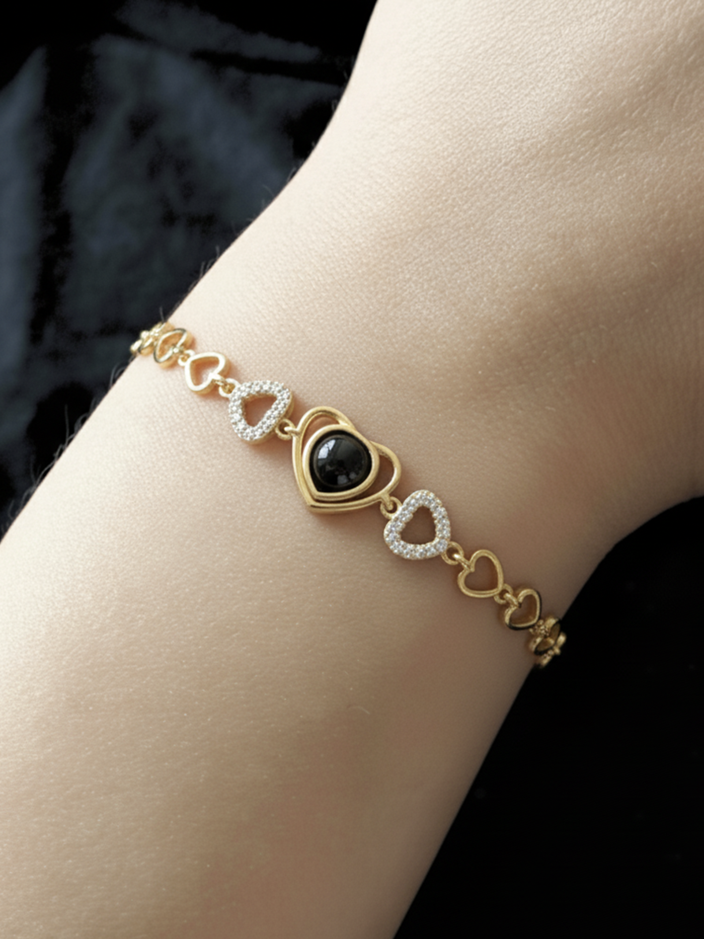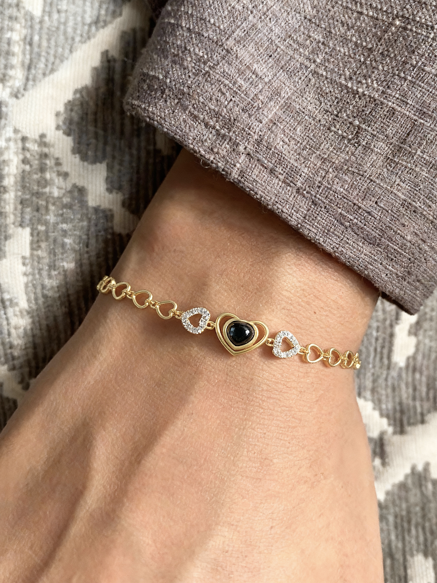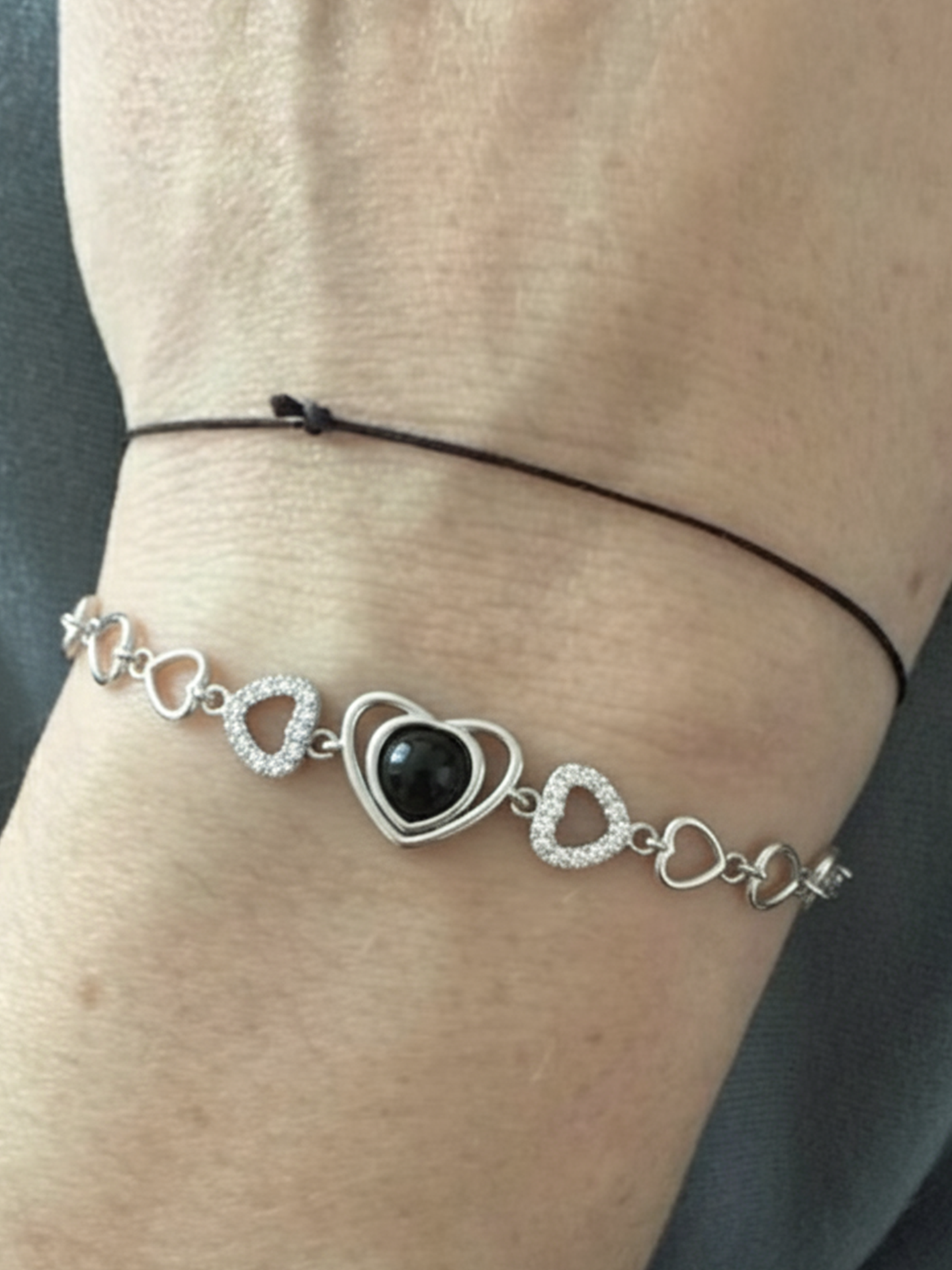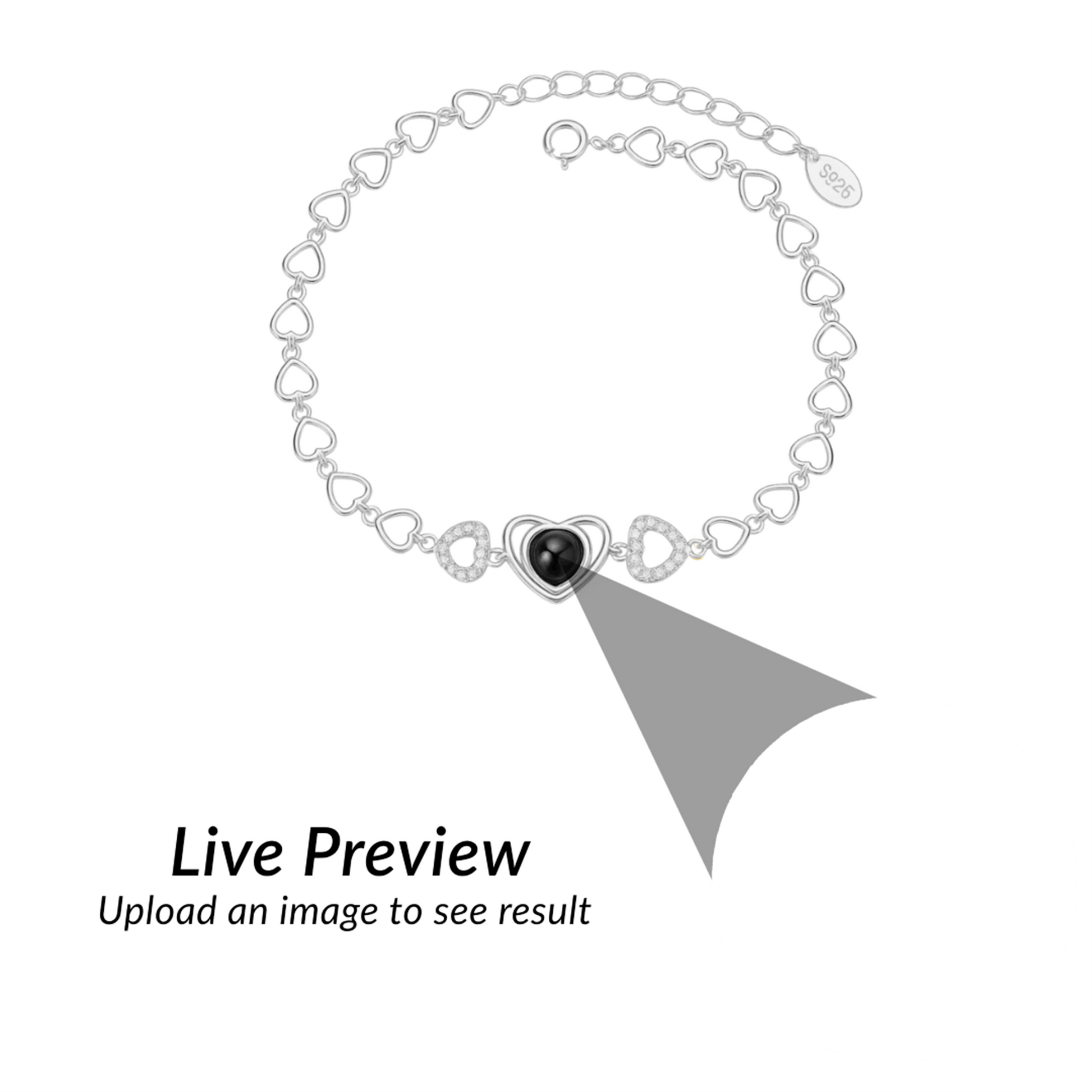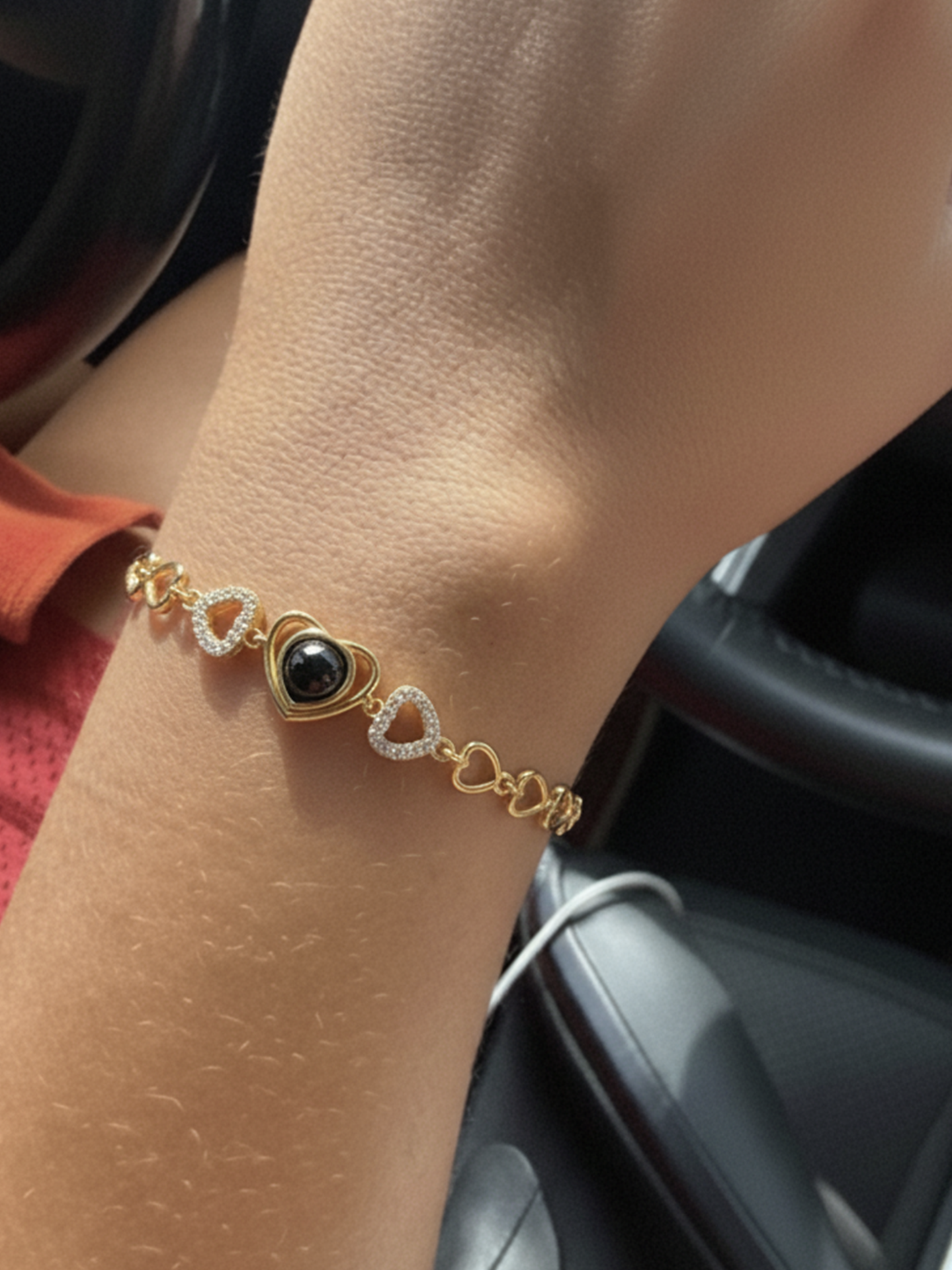 Dieses großartige Armband verbindet ein zeitloses Design mit einer tiefen Emotion. In der Mitte jedes funkelnden Herzens findet sich ein individuell anpassbarer Projektionsstein, der ein Fotogeheimnis bewahrt – von einem geliebten Menschen, einem besonderen Moment oder einer wichtigen Nachricht, alles kurz vor Ihnen.