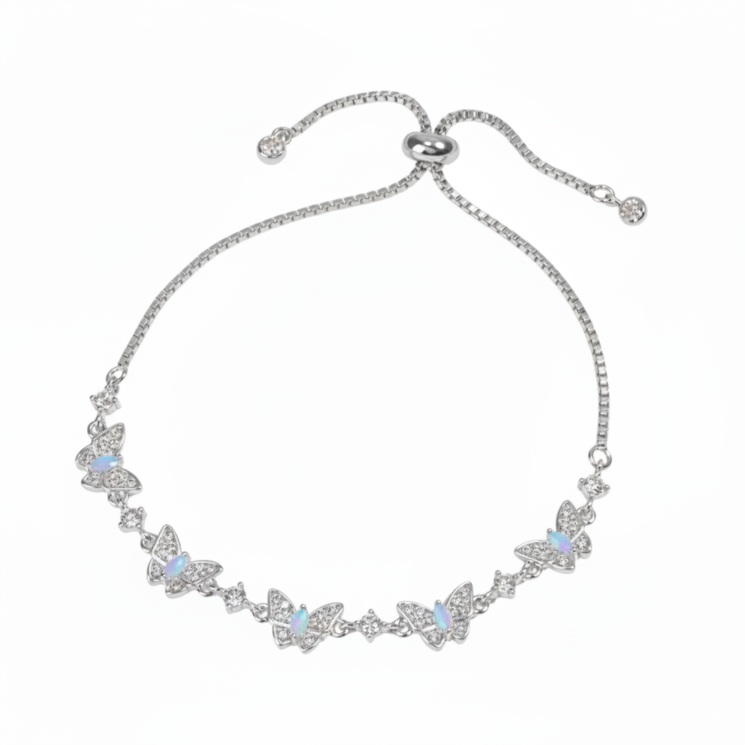 Lassen Sie sich von der Zartheit und dem Funkeln des Butterfly Glow Armbands verzaubern, einem edlen Schmuckstück, das Anmut und Leichtigkeit verkörpert. Sein prächtiges Design zeigt exquisite Schmetterlinge, die mit funkelnden Kristallen verziert sind und bei jeder Bewegung das Licht einfangen und Ihr Handgelenk mit einem magischen Glanz erstrahlen lassen.