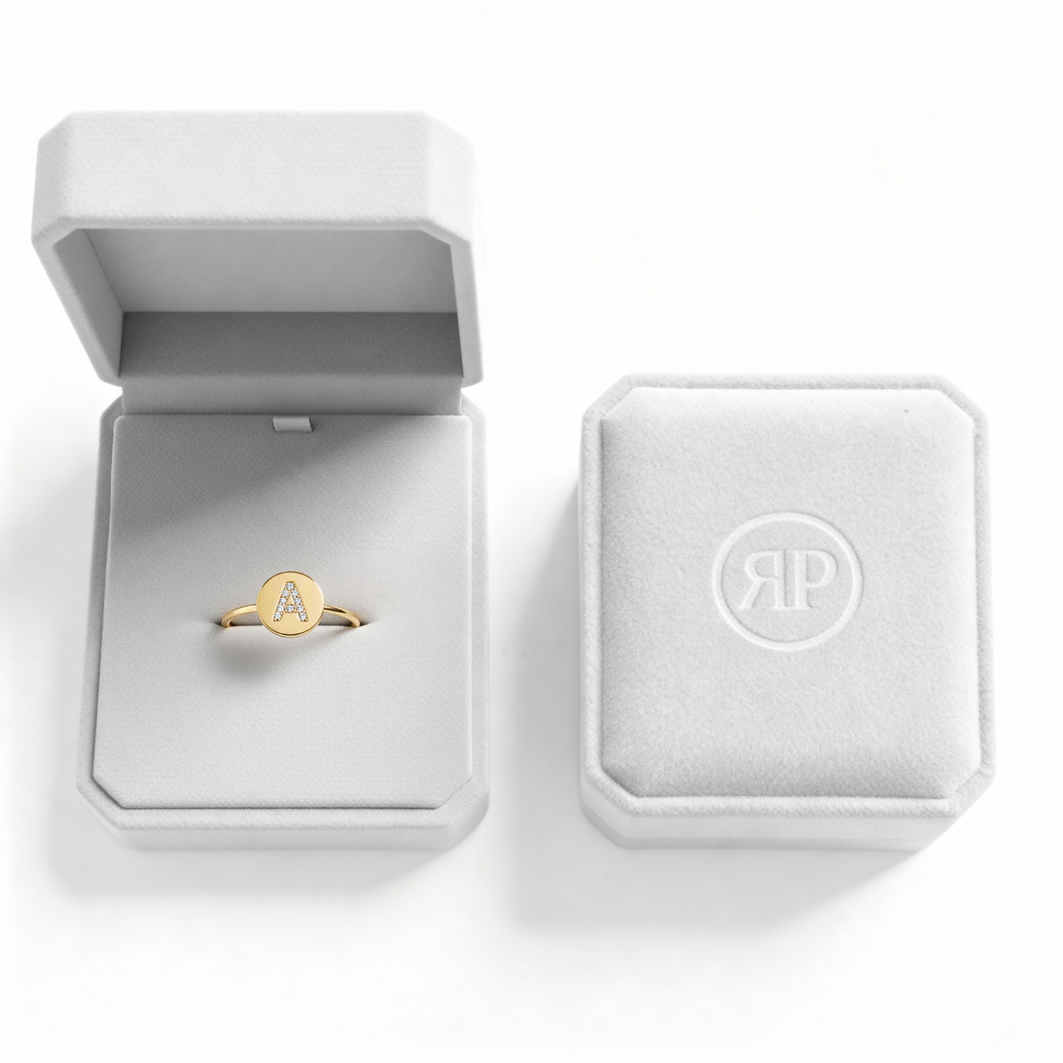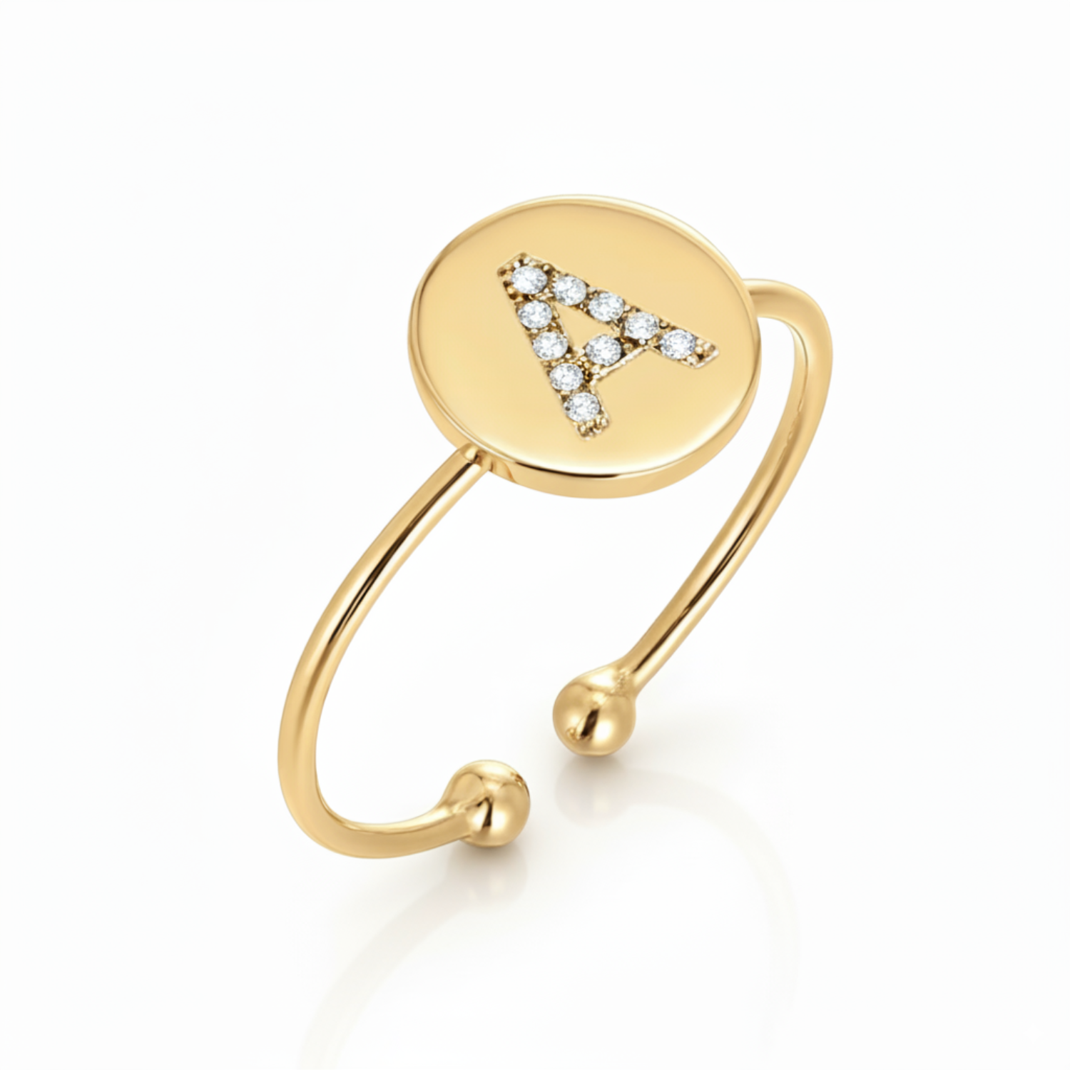 Verleihen Sie Ihrem Schmuckstück mit unserem goldenen Buchstabenring, der mit schimmernden Kristallen verziert ist, eine persönliche, funkelnde Note.