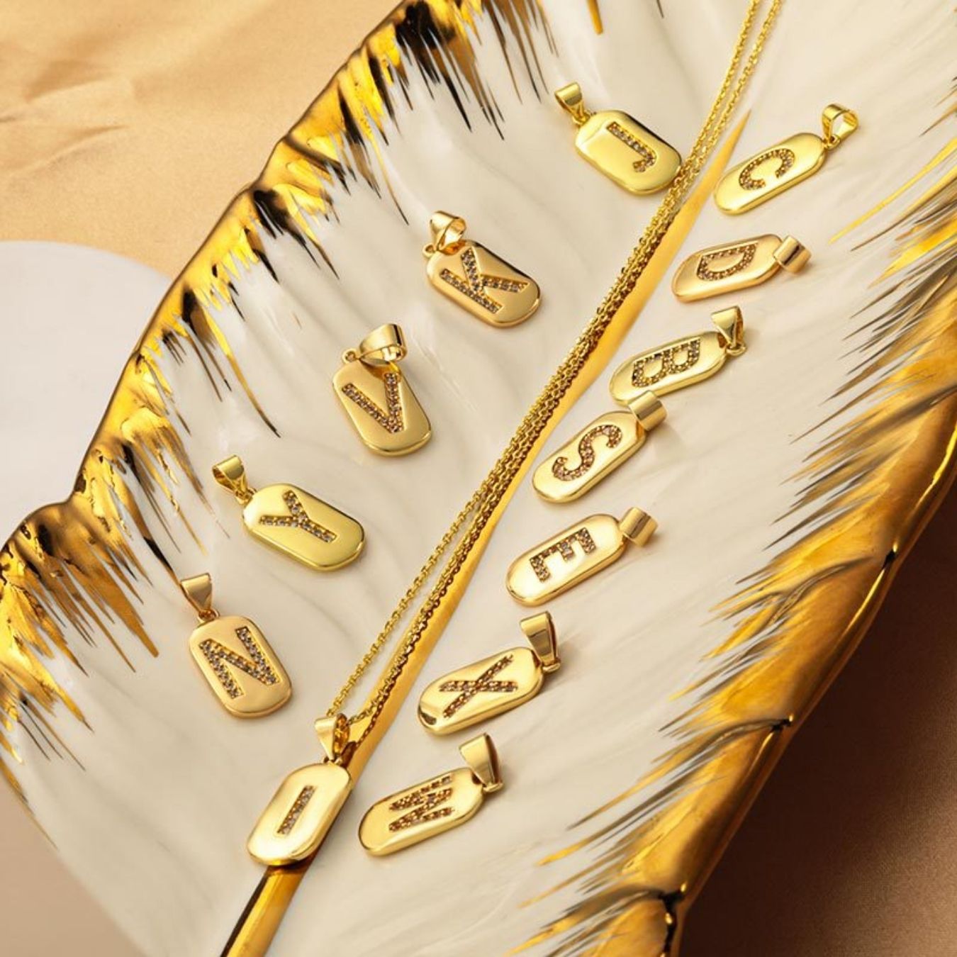Jeder Buchstabe glänzt elegant auf einem goldfarbenen Medaillon mit modernem Look und schafft so ein Stück, das sowohl persönlich als auch zeitlos ist.