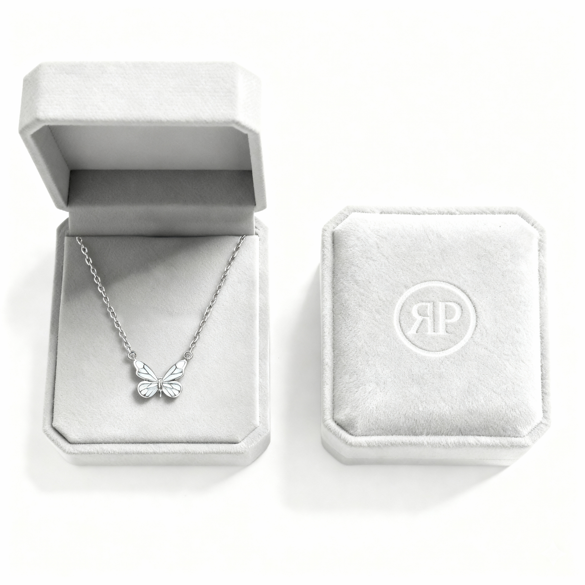 Lassen Sie die Magie unserer leuchtenden Schmetterlingskette auf sich wirken, einem bezaubernden Schmuckstück, das Ihren Stil Tag und Nacht unterstreicht. Der leuchtende Schmetterlingsanhänger fängt das Licht ein und entfaltet im Dunkeln ein magisches Leuchten, das Ihrem Look einen Hauch von Geheimnis und Raffinesse verleiht.
