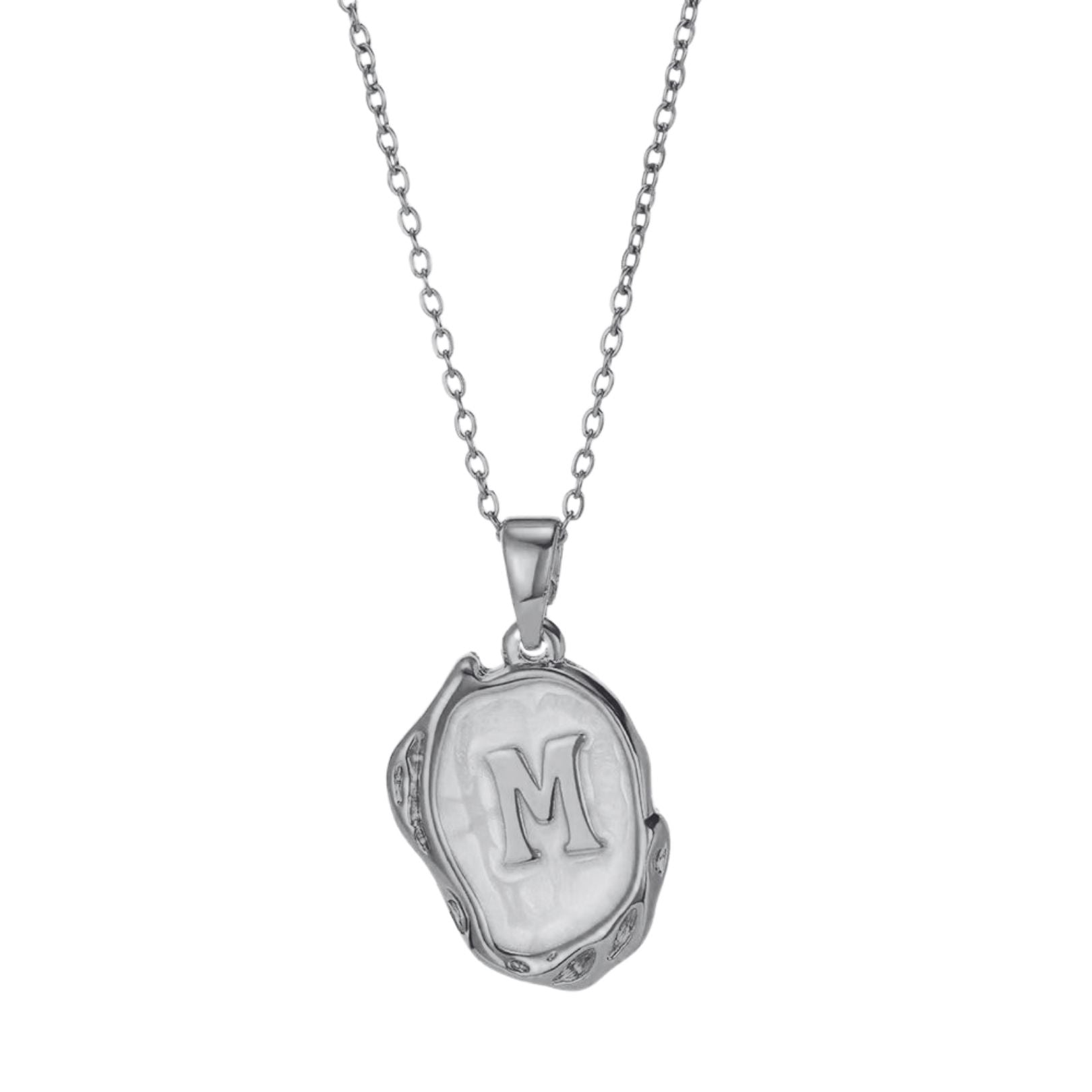 Tauchen Sie ein in zeitlose Eleganz mit unserer goldenen Initialenkette, inspiriert von einem königlichen Siegel. Dieses Schmuckstück erinnert an antike Wachssiegel und zeigt einen geformten Buchstaben auf perlmuttfarbenem Hintergrund, eingerahmt von einem fein handgefertigten Goldrand.